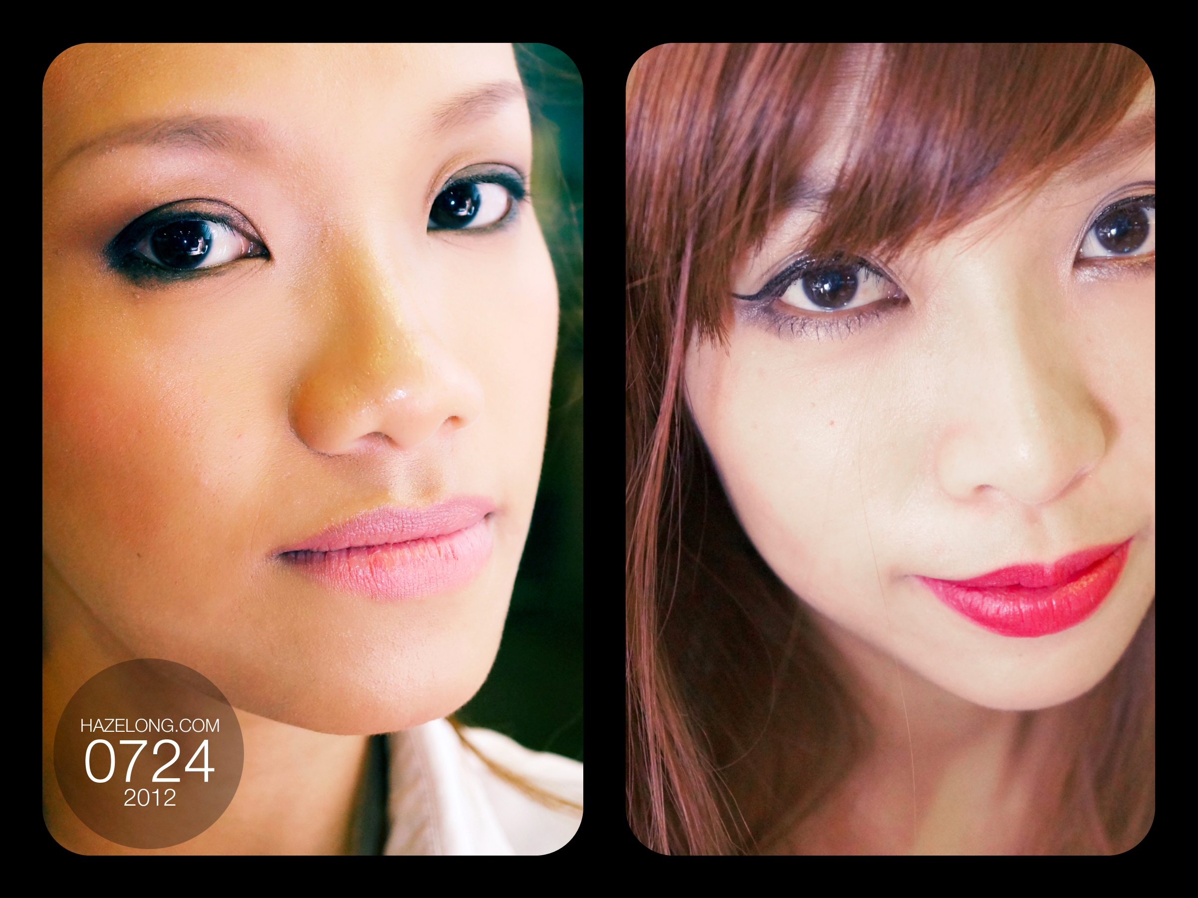 Cheesie‘s makeup – Nude eyes with eyeliner and glitter on lower lash line. Lots of mascara and hot red lipstick.