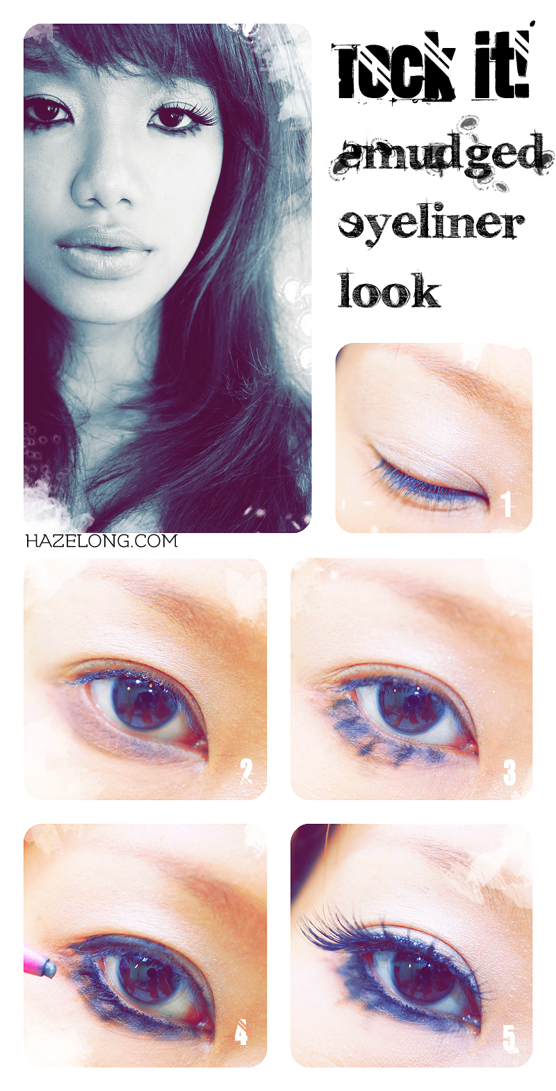 - Finish the look with long falsies. Make sure you do this to balance the makeup. The smudged eyeliner serves as a dramatic shadow effect for the upper lashes.