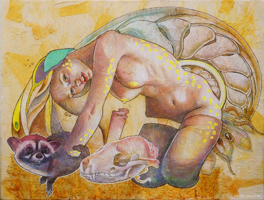 Right before the holiday start, I rushed to finish up my latest painting for a mini exhibition. It’s gonna be sold together with Vinn and Michelle’s(my new staff!) paintings in Mojo Cafe. This particular piece is done on canvas, with paper pulp texture to hold the graphite and inks.
