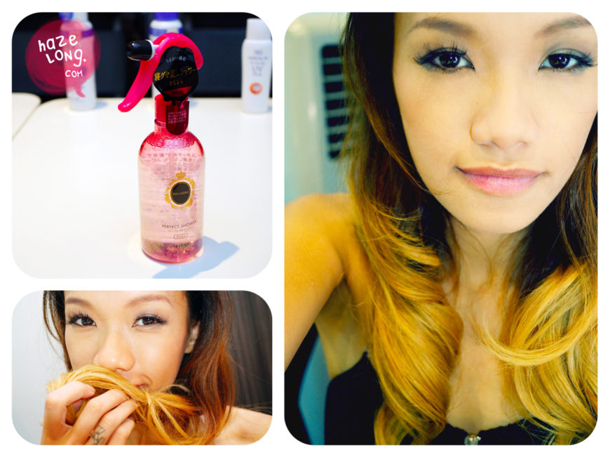 The product is a lightweight hairstyling produced called Perfect Shower 60ml RM39.90, it comes in 3 types – Smooth for straight hair, Moist for adding moisture and Wave for curls. I tried it and it smells wonderful. It’s a new kind of hairstyling product that conditions your hair to look healthier, not the kind that sets it in place.